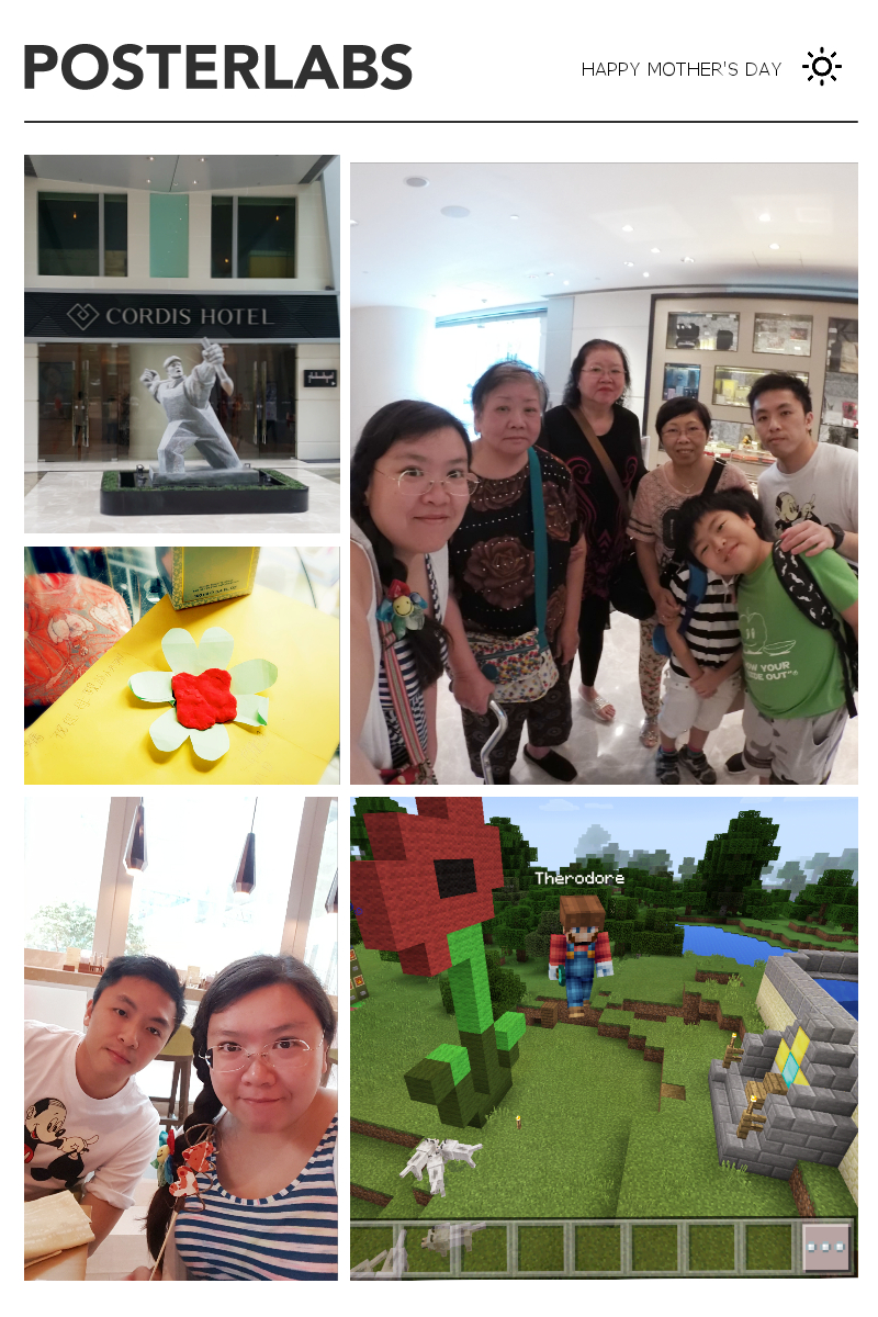 豆豆同細佬0係佢地 minecraft 既世界,起左間屋,一個皇位同一朵花比我 XD 再加 4 個媽媽一齊去 Sunday Brunch,超滿足。Happy Mother’s Day