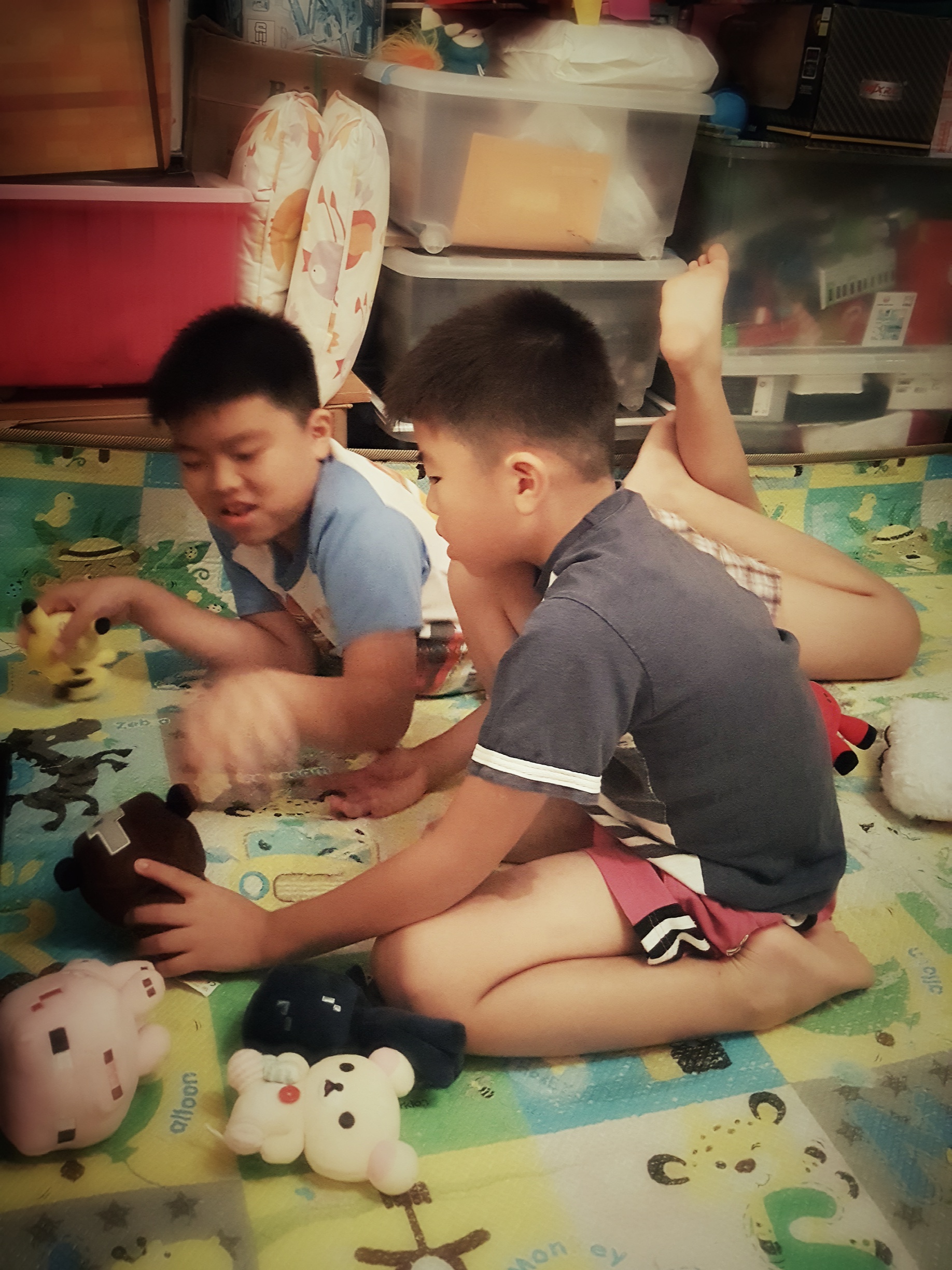 一回到家,見到兩個細路玩公仔,所有火都下了。。。